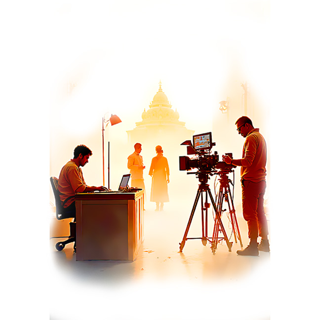 Behind every frame, we channel Sanatan wisdom and cultural depth. Whether it is the discipline of our crew, the respect between artists, or the mindful energy that drives our projects — the culture of our studio ensures that cinema remains a sacred art form, not just entertainment.